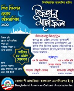 উদ্বোধকঃ জনাব আব্দুল হাসিম হাসনু প্রতিষ্টাতাআহবায়ক,বাংলাদেশী আমেরিকান কালচারাল এসোসিয়েশন